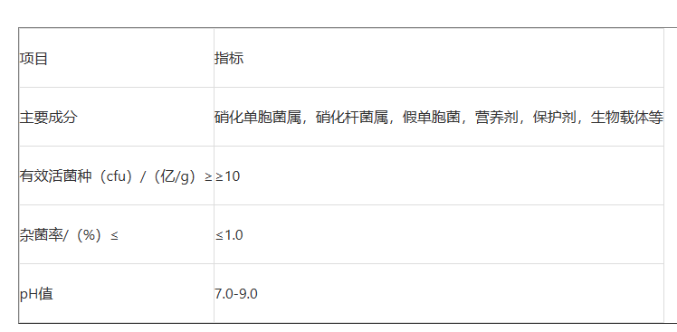 【使用条件】溶解氧:≥2 mg/L; 温度:6~20℃(建议8℃以上开始投加),pH: 7~9;盐度:≤15000mg/L;不含重金属;不含生物毒性化合物。